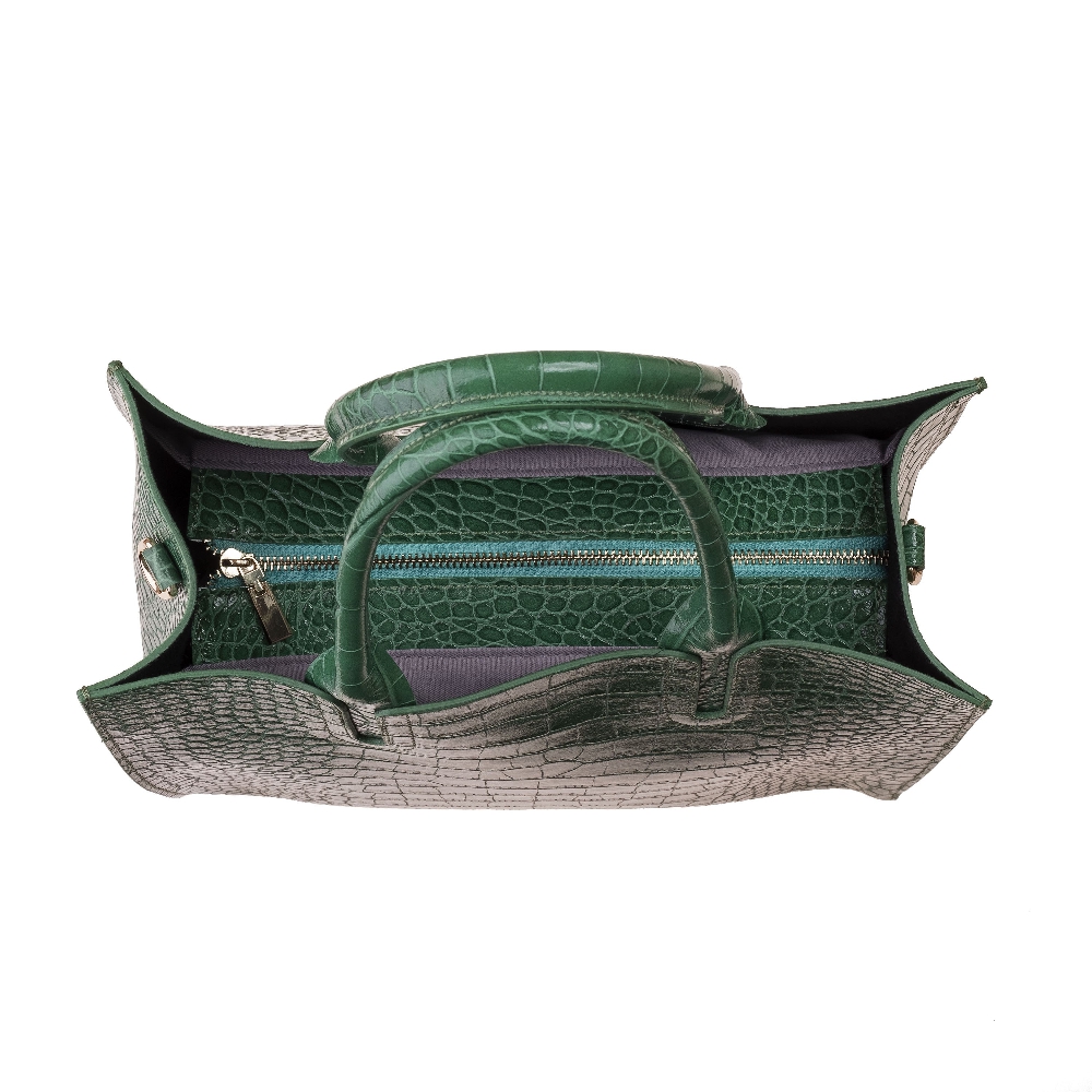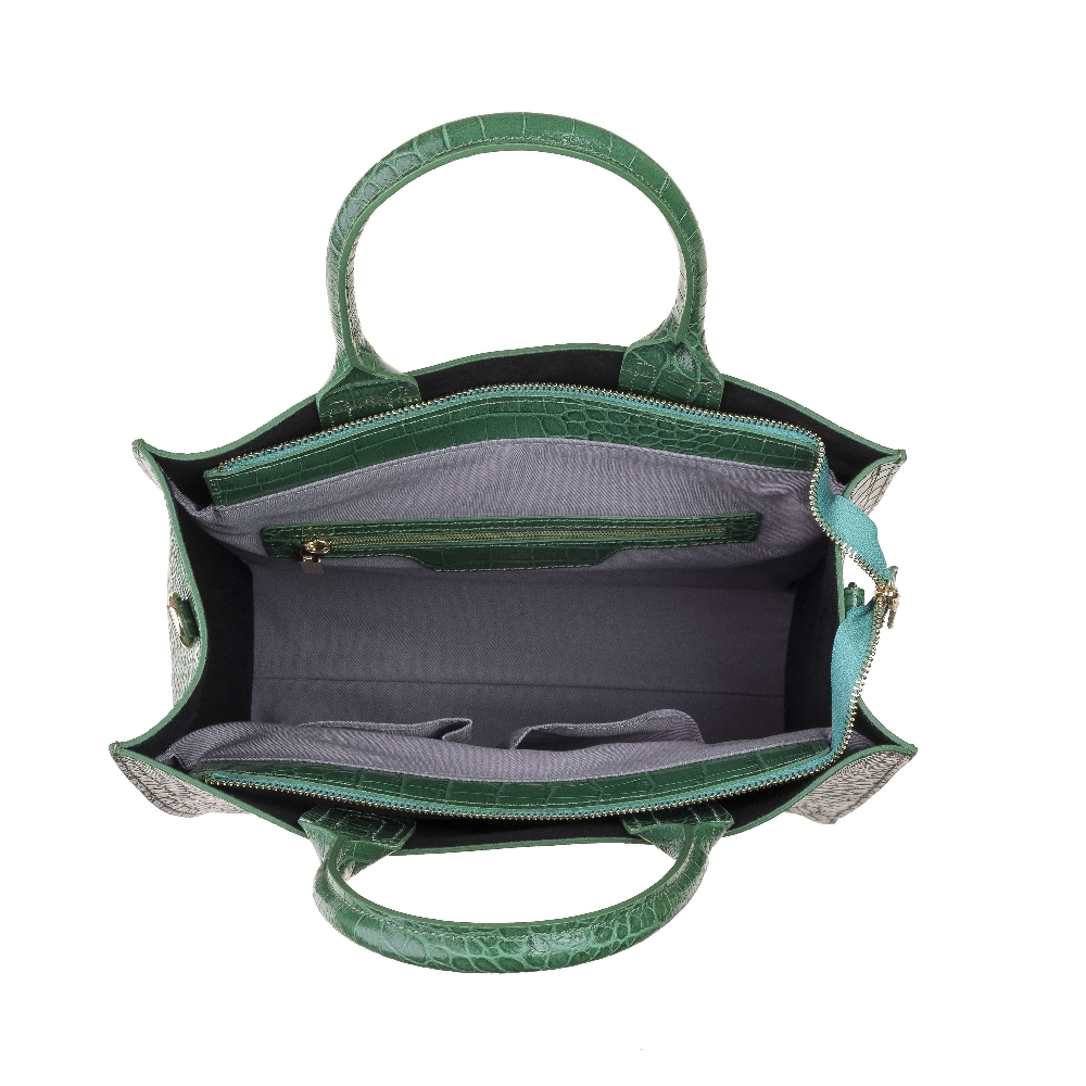 The lining is of cotton twill. Leather-trimmed, zippered inside pocket, cell phone, and utility open compartments. All metal zipper pullers. 100% genuine Italian calf leather, flannel dust bag included, Made in Italy.