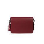 The main compartment closes with a flap and metal lock. Zippered divider inside. Open pocket covered by the flap. Wipeable lining and gunmetal-plated hardware.