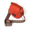 Compact pebbled leather crossbody bag. Accordion-style. The crossbody strap is adjustable and made of coloured cotton mesh with matching leather ends.
