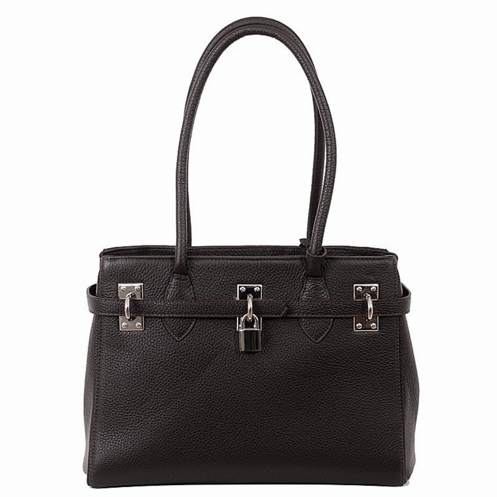The top of the bag is securely closed by two zippered leather flaps. (the front padlock is decorative). The interior features a divider which also is a zippered compartment. Lining is of washable “maialino” (synthetic pig skin). Leather trimmed, zippered inside pocket, cell phone and utility open compartments. All metal zipper pullers.