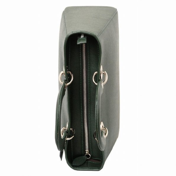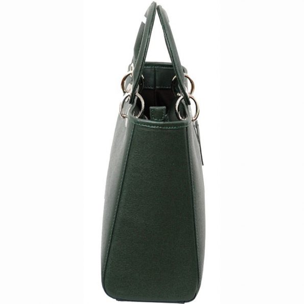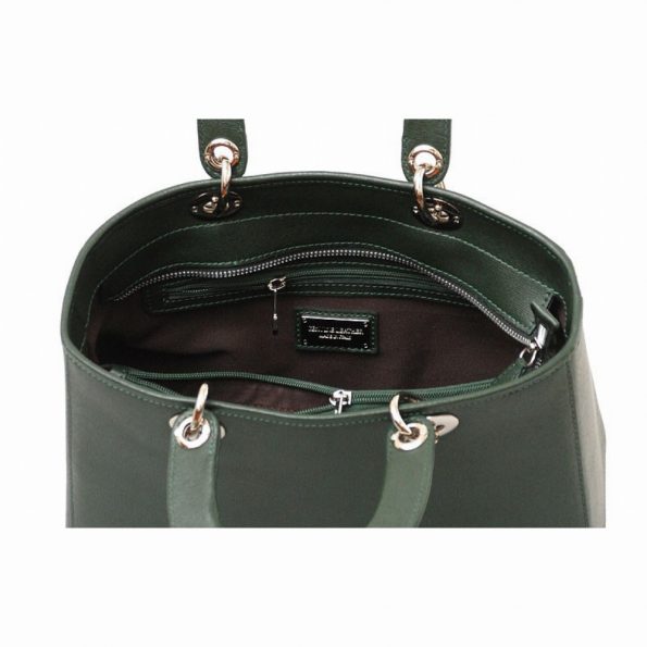 A minimalist yet sophisticated design is the trademark of the Panna tote. The ribbed handles have a concealed rigid frame and are attached to the bag by metal rings. A heavy gauge metal zipper secures the main compartment, while a zippered divider inside enables you to organize contents. A leather, detachable, adjustable shoulder strap is provided for hands-free carrying of the Panna tote. 100% cotton twill lining, leather-trimmed, zippered inside pocket, cell phone and utility open compartments. 100% genuine Italian calf leather, flannel dustbag included, made in Italy.